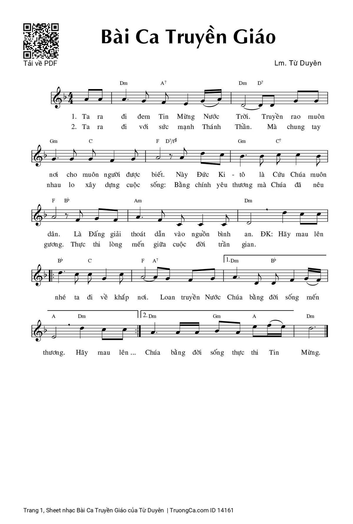 Sheet PDF with the same name Bài Ca Truyền Giáo: