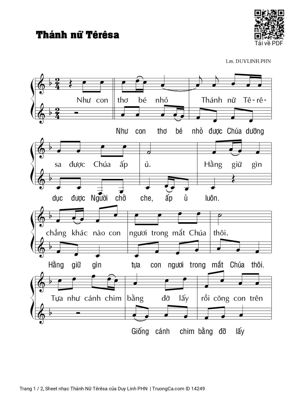 Sheet PDF with the same name Thánh Nữ Têrêsa: