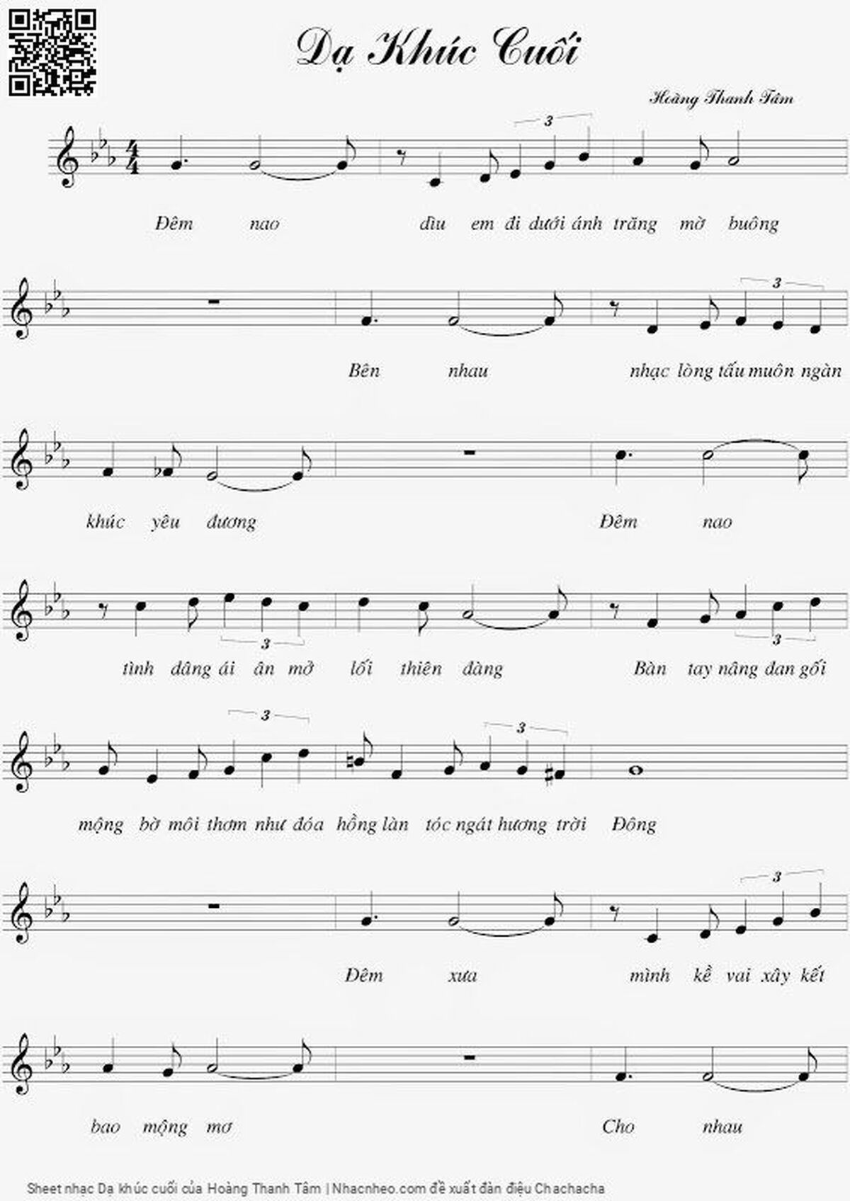 Hoàng Thanh Tâm Đêm nao dìu em đi dưới ánh trăng mờ buông [PDF] [Sheet] [Lyrics] [Mp4/Midi]