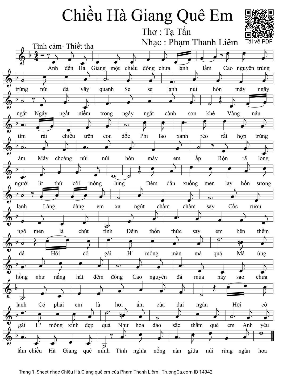 Phạm Thanh Liêm Anh đến Hà Giang một chiều đông chưa lạnh lắm [PDF] [Sheet] [Lyrics] [Mp4/Midi]