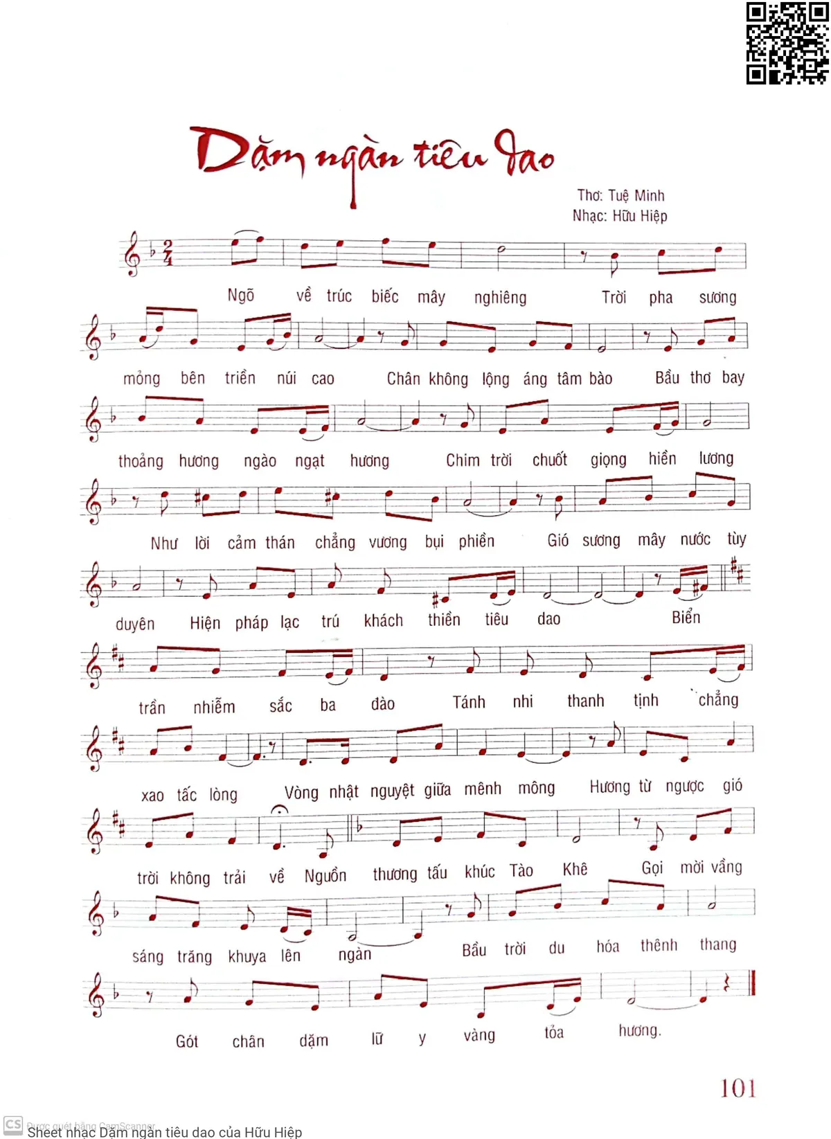 Hữu Hiệp Ngõ về trúc biếc mây nghiêng Trời pha sương mỏng bên triền núi cao [PDF] [Sheet] [Lyrics] [Mp4/Midi]