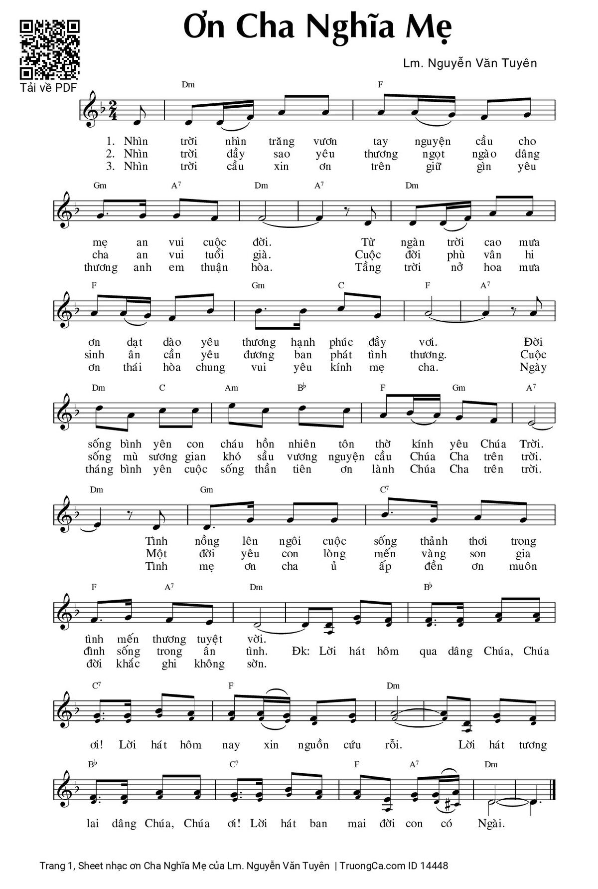 Sheet PDF with the same name ơn Cha Nghĩa Mẹ: