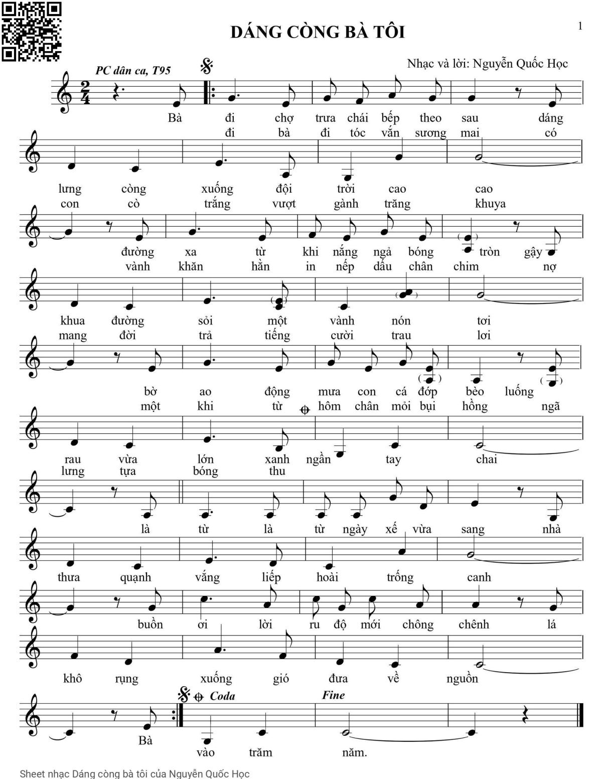 Nguyễn Quốc Học Bà đi chợ trưa chái bếp theo sau Dáng lưng còng xuống đội trời cao cao [PDF] [Sheet] [Lyrics] [Mp4/Midi]