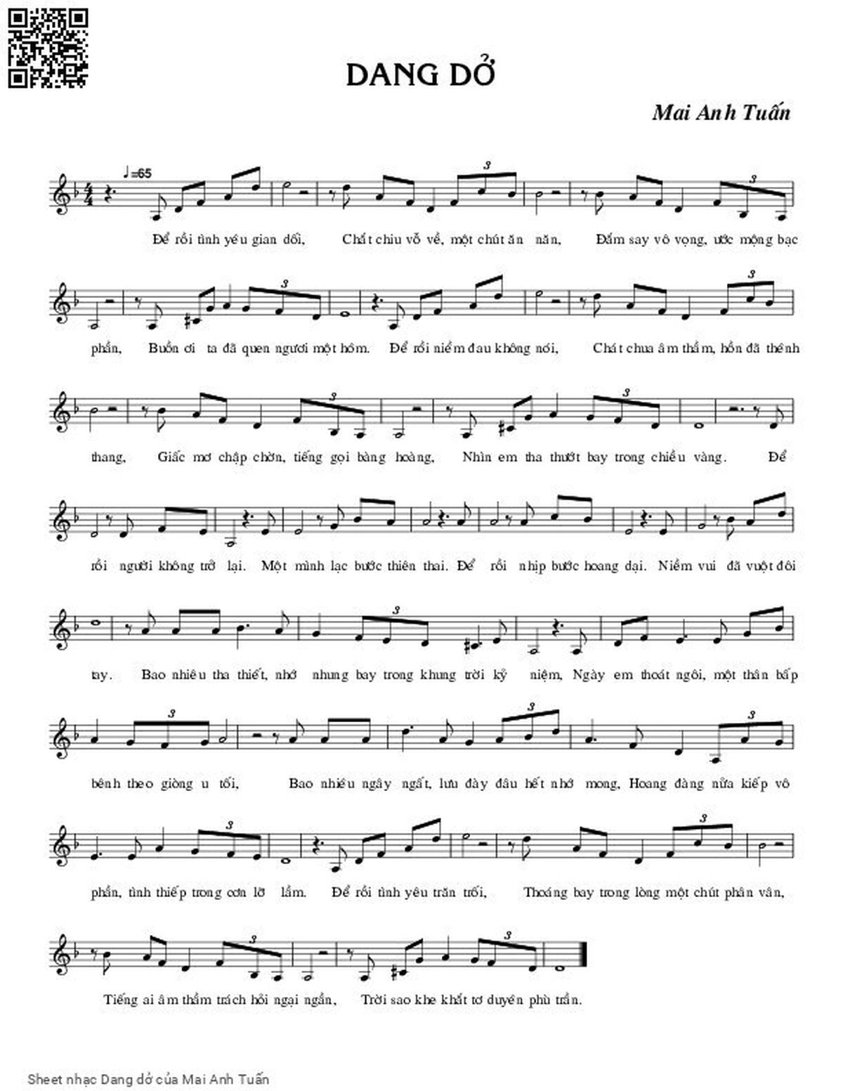 Mai Anh Tuấn Để rồi tình yêu gian dối Chắt chiu vỗ về [PDF] [Sheet] [Lyrics] [Mp4/Midi]