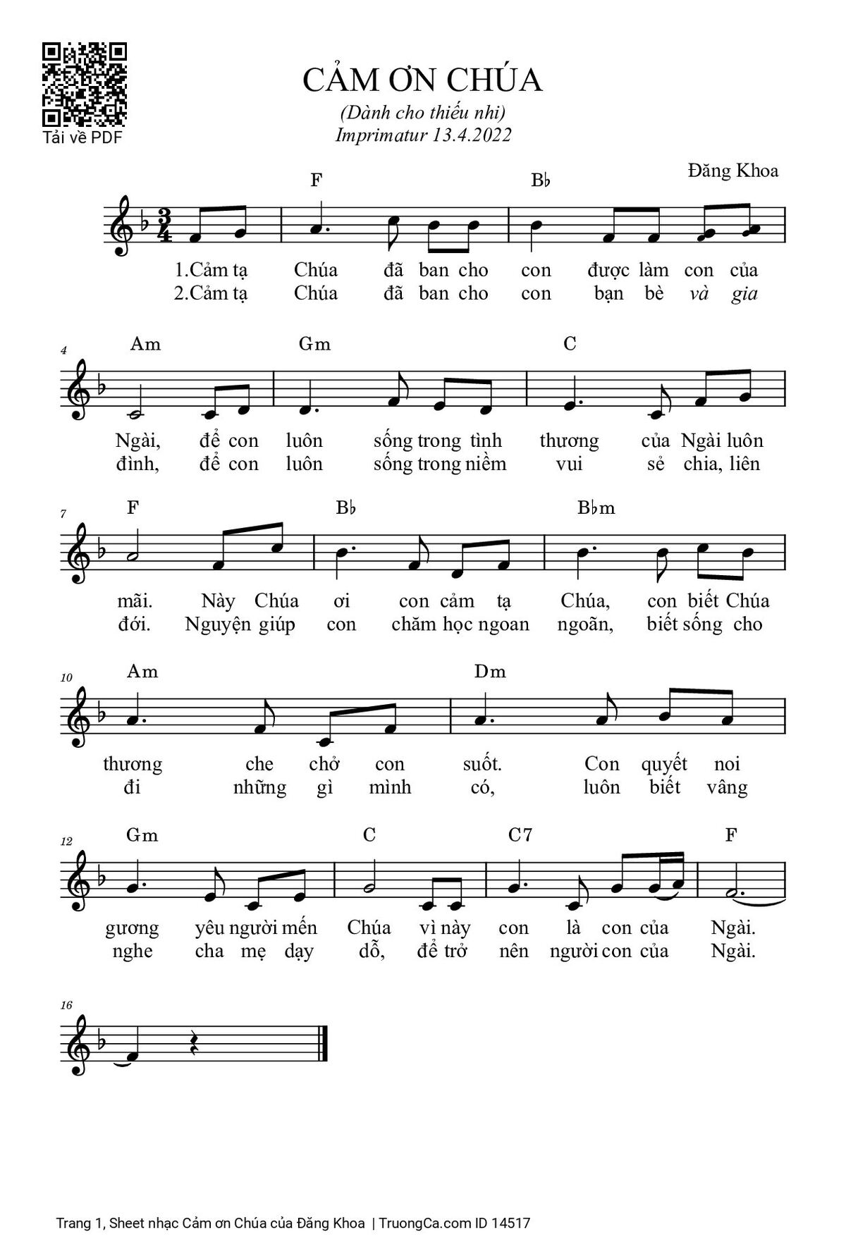 Transposition is the process of moving a song's melody and chords up or down in pitch by a constant interval. The direction of the transposition tool is indicated by a plus (+) sign for up and a minus (-) sign for down. Hover mouse over chords signs to see the chords chart of Cảm ơn Chúa song.
