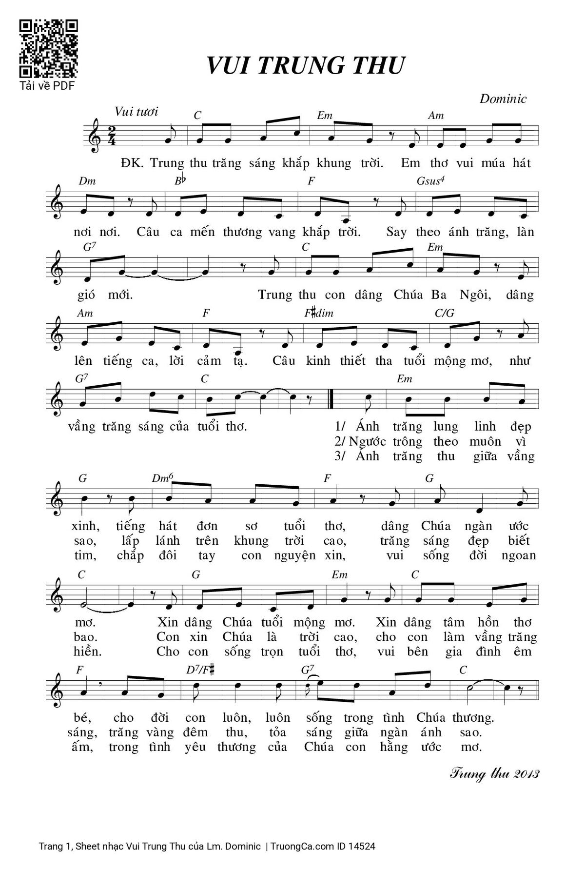 Điệp khúc. Trung thu trăng sáng khắp khung trời em thơ vui múa hát nơi nơi. Câu ca mến thương vang khắp trời. Say theo ánh trăng, làn gió mới. Trung thu con dâng Chúa Ba Ngôi, dâng lên tiếng ca, lời cảm tạ. Câu kinh thiết tha tuổi mộng mơ, như vầng trăng sáng của tuổi thơ.