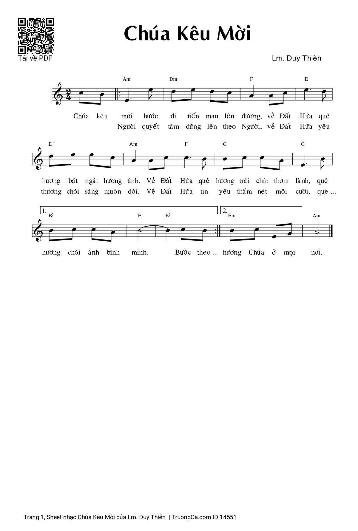 Transposition is the process of moving a song's melody and chords up or down in pitch by a constant interval. The direction of the transposition tool is indicated by a plus (+) sign for up and a minus (-) sign for down. Hover mouse over chords signs to see the chords chart of Chúa Kêu Mời song.