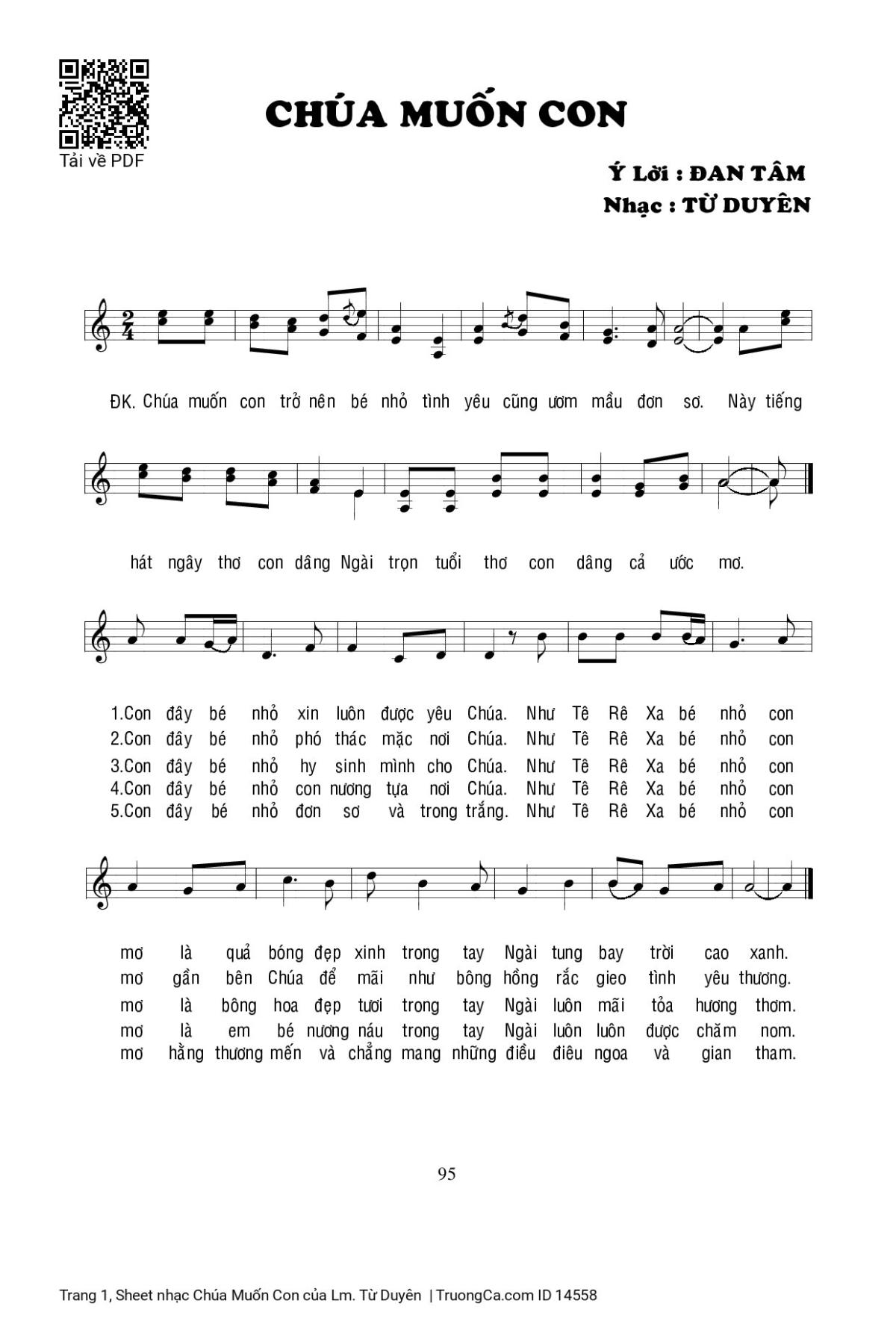 Điệp khúc: Chúa muốn con trở nên bé nhỏ tình yêu cũng ươm mầu đơn sơ. Này tiếng hát ngây thơ con dâng Ngài trọn tuổi thơ con dâng cả ước mơ.