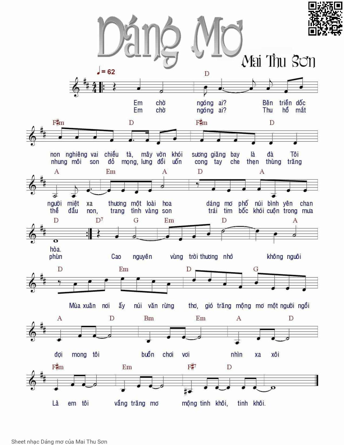 The Videos/audios Dáng mơ by Mai Thu Sơn were embed from Youtube, Musescore or the other 3rd links. Videos are subject to 3rd's copyright control and may be removed by YouTube's copyright rules and 3rd's policies or maybe included advertisements. If you cannot access to these songs, this mean that have been removed.