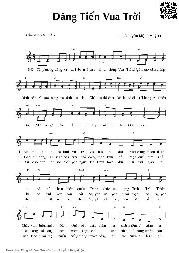 Lm. Nguyễn Mộng Huỳnh Từ phương đông xa xôi ba nhà đạo sĩ đi viếng Vua Trời [PDF] [Sheet] [Lyrics] [Mp4/Midi]