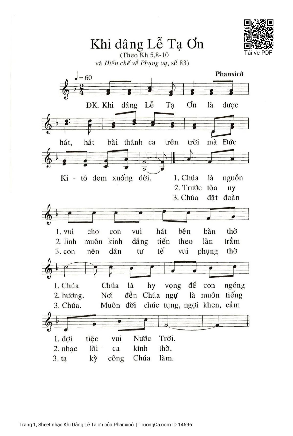 Điệp khúc. Khi dâng Lễ Tạ Ơn là được hát, hát bài thánh ca trên trời mà Đức Ki-tô đem xuống đời.