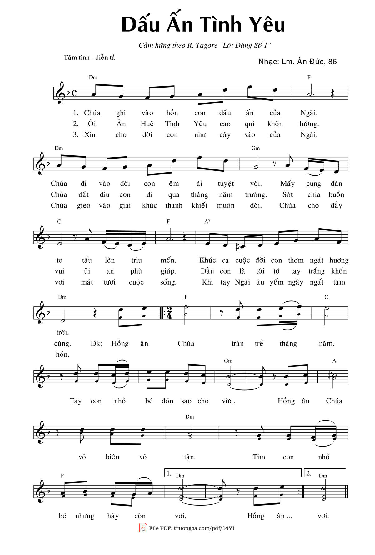Lm. Ân Đức Chúa ghi vào hồn con dấu ấn của Ngài Chúa ghi vào đời con êm ái tuyệt vời [PDF] [Sheet] [Lyrics] [Mp4/Midi]