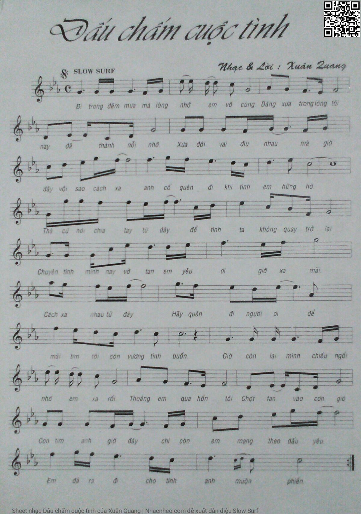 Transposition is the process of moving a song's melody and chords up or down in pitch by a constant interval. The direction of the transposition tool is indicated by a plus (+) sign for up and a minus (-) sign for down. Hover mouse over chords signs to see the chords chart of Dấu chấm cuộc tình song.