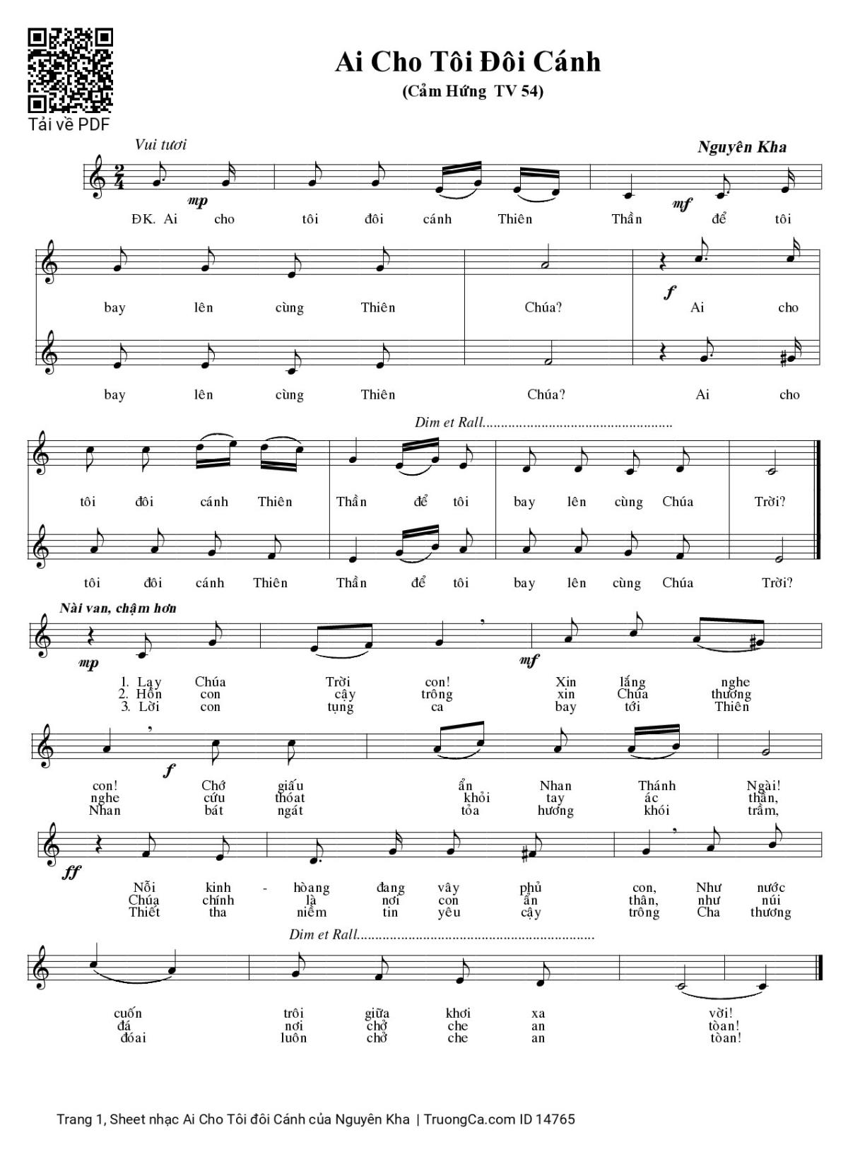 Điệp khúc. Ai cho tôi đôi cánh Thiên Thần để tôi bay lên cùng Thiên Chúa? Ai cho tôi đôi cánh Thiên Thần để tôi bay lên cùng Chúa Trời?