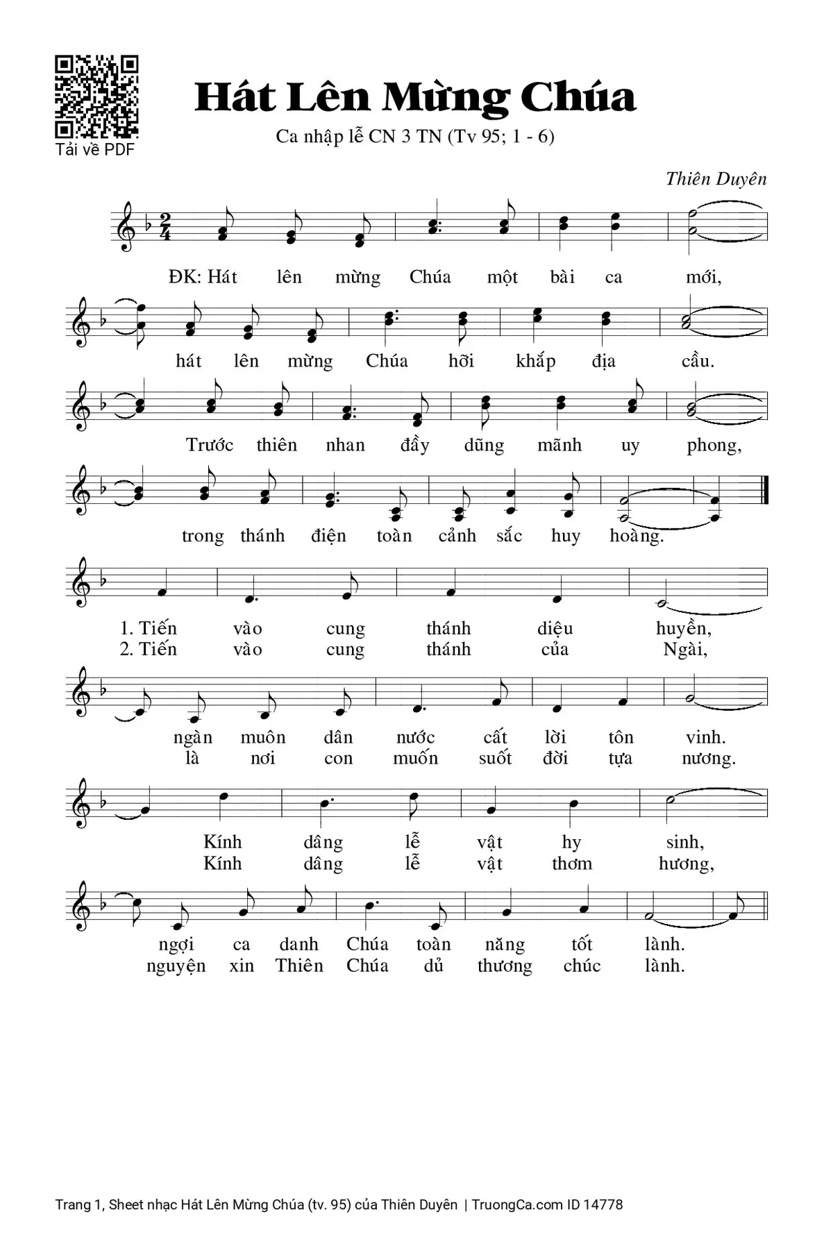 Sheet PDF with the same name Hát Lên Mừng Chúa (tv. 95):