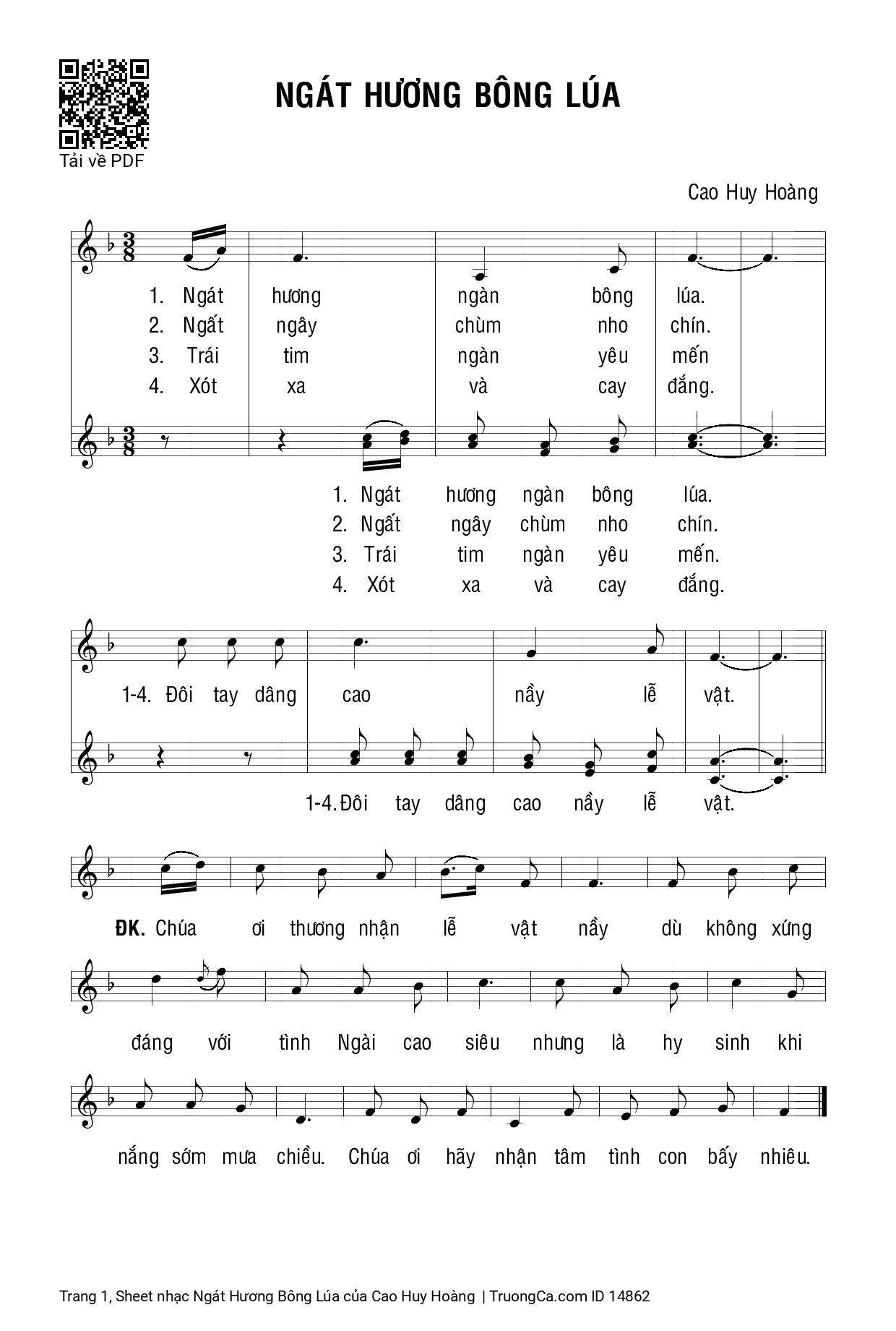 1/ Ngát hương ngàn bông lúa, đôi tay dâng cao nầy lễ vật.