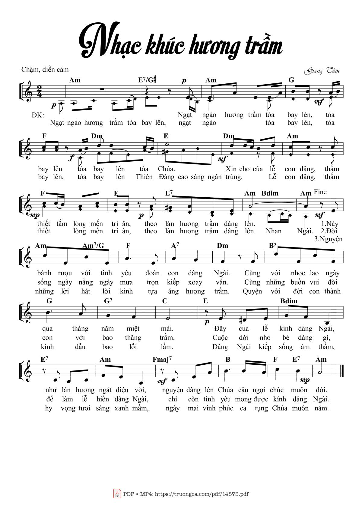 Giang Tâm Ngạt ngào hương trầm tỏa bay lên tỏa bay lên tỏa bay lên tòa Chúa [PDF] [Sheet] [Lyrics] [Mp4/Midi]