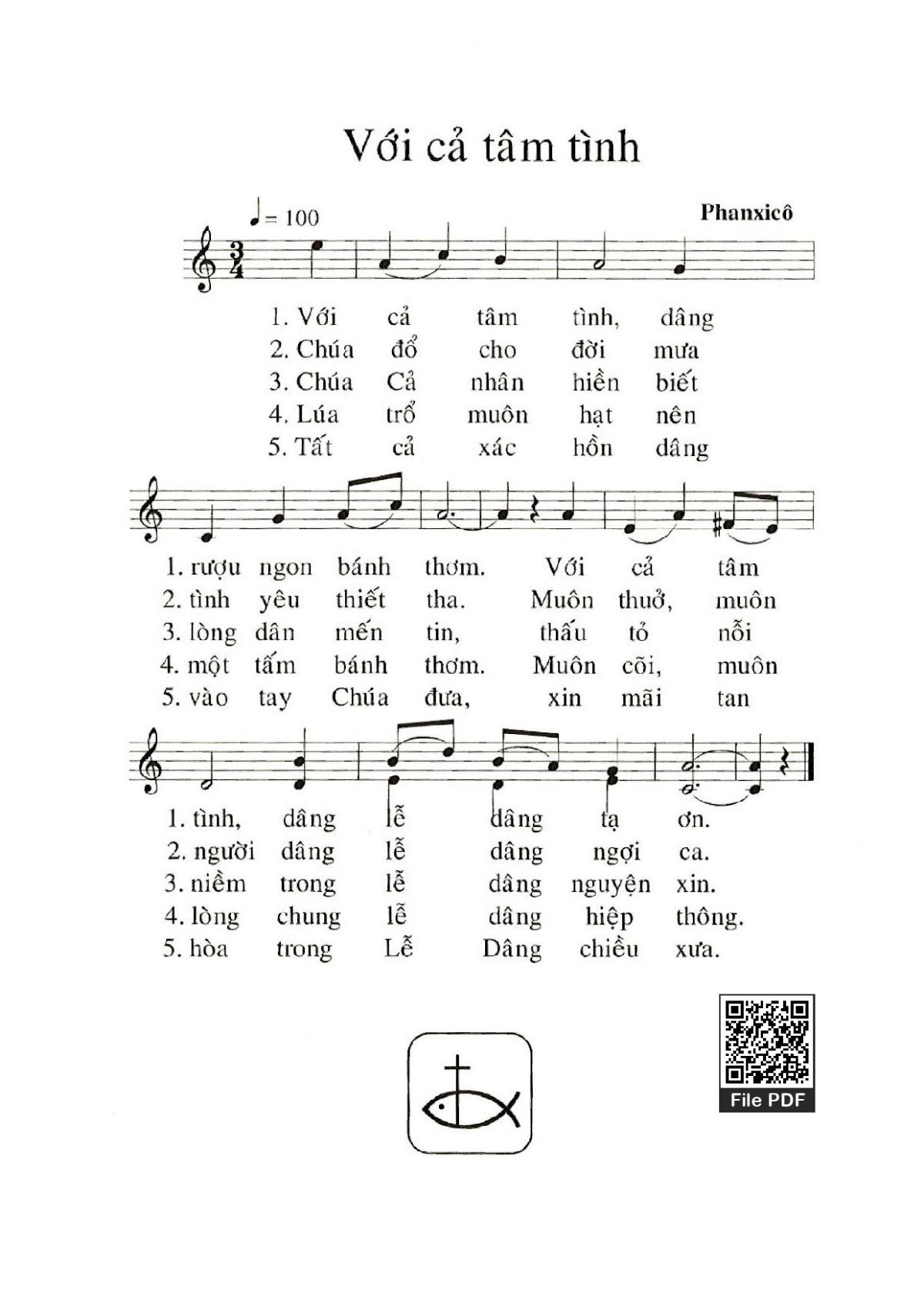 1/ Với cả tâm tình, dâng rượu ngon bánh thơm, với cả tâm tình, dâng lễ dâng tạ ơn.