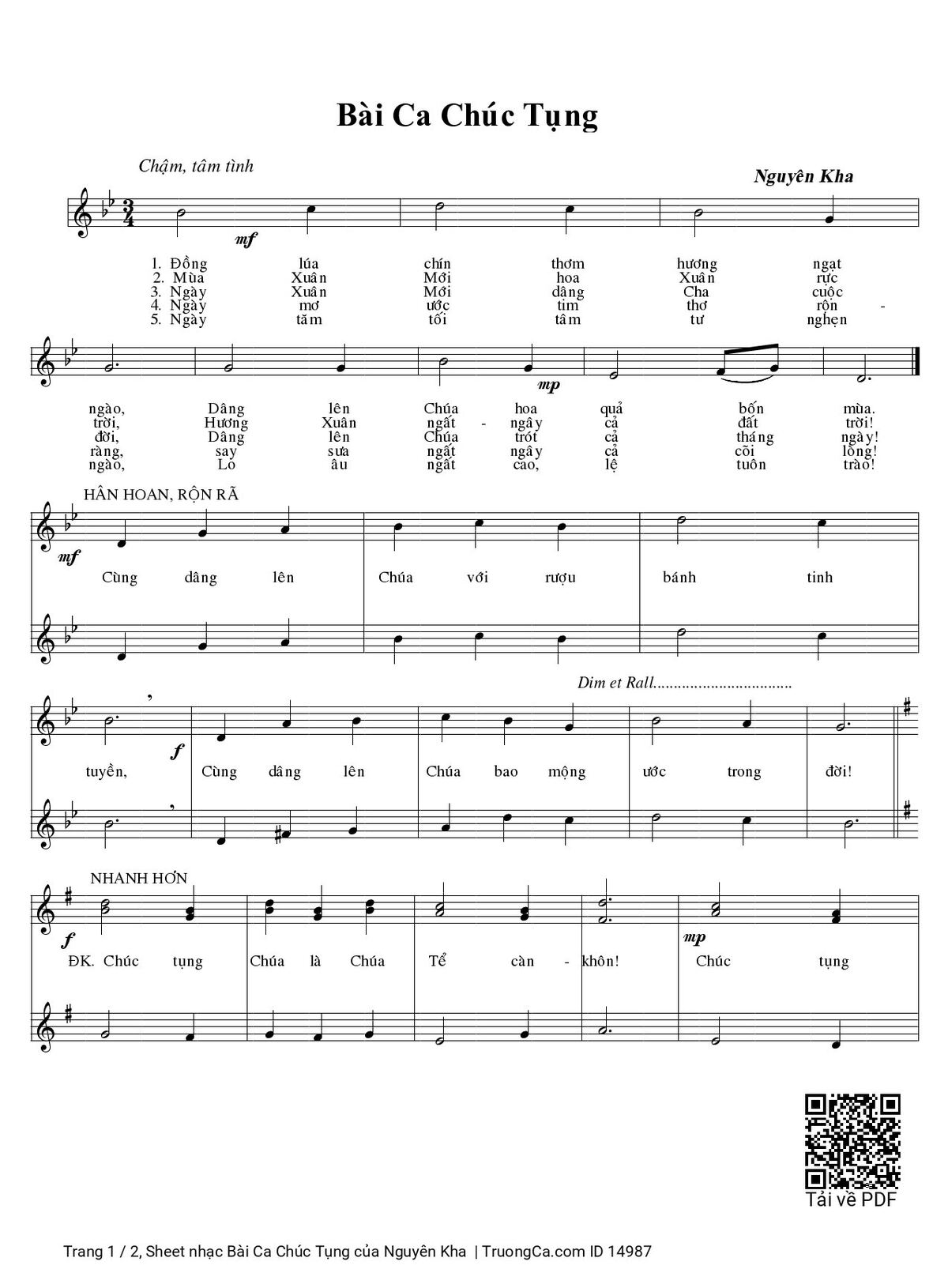 Sheet PDF with the same name Bài Ca Chúc Tụng: