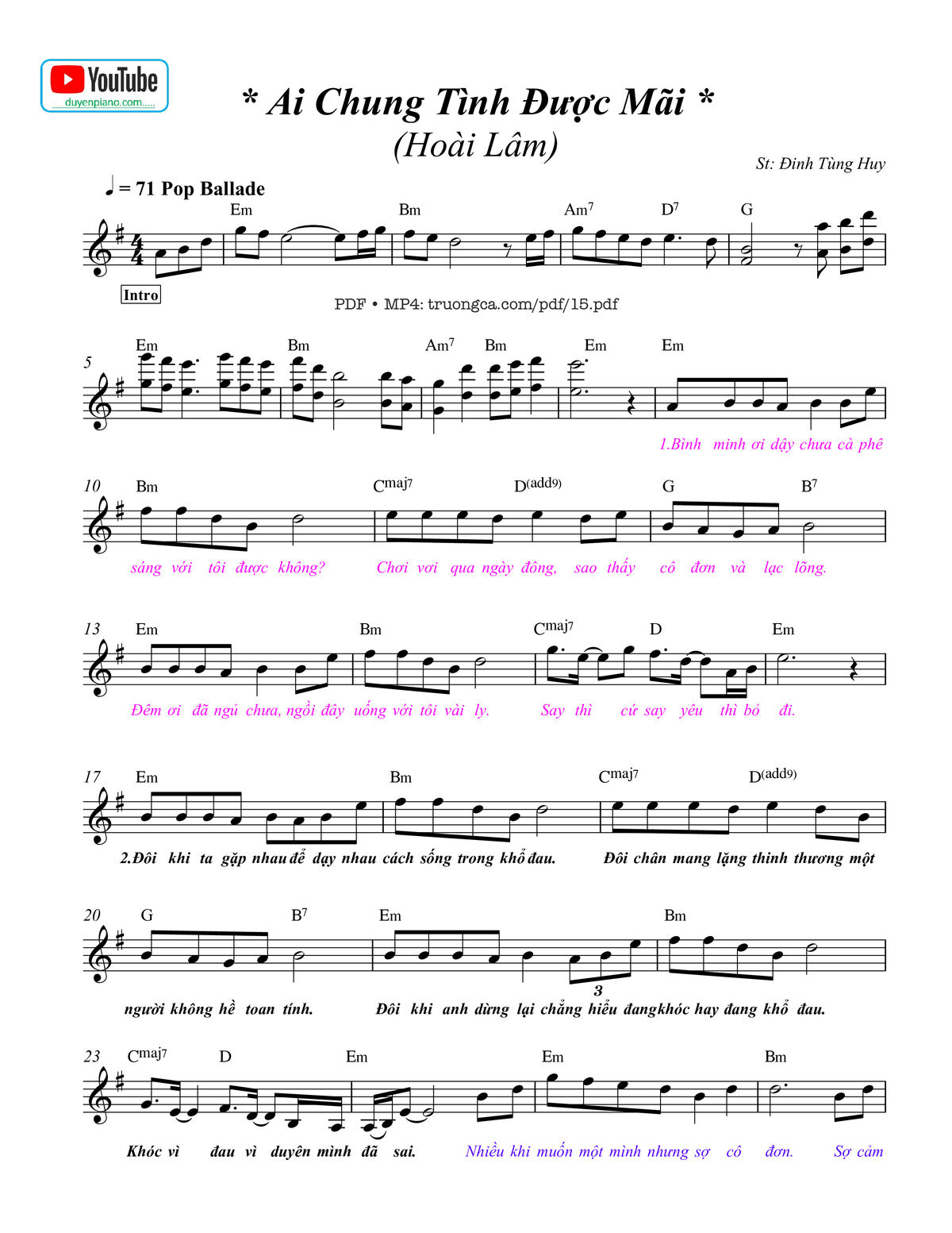 Sheet PDF with the same name Ai chung tình được mãi: