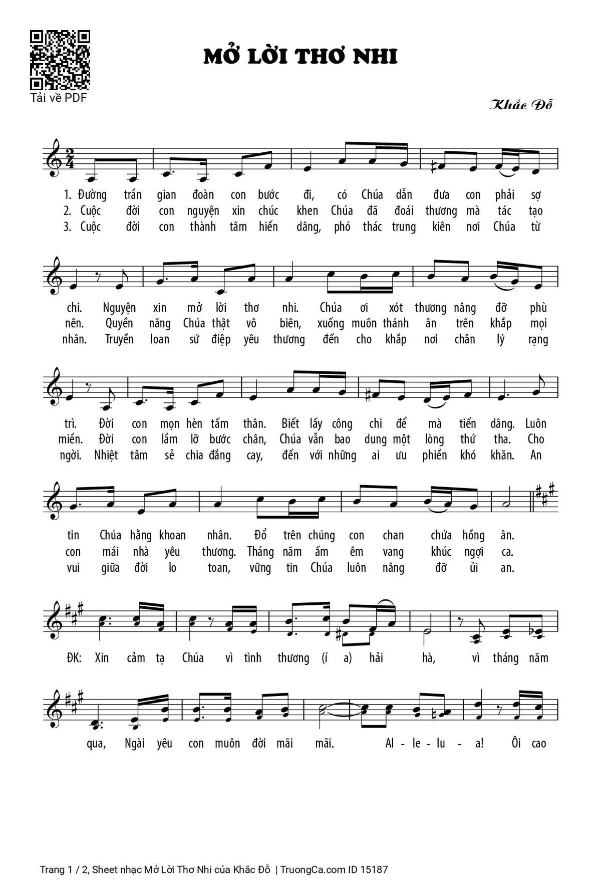 Điệp khúc: Xin cảm tạ Chúa vì tình thương hải hà, vì tháng năm qua, Ngài yêu con muôn đời mãi mãi. Al-le-lu-ia! Ôi cao vời tình Chúa bao la, mãi muôn đời tình chẳng phôi pha. Hát khen Danh Ngài trọn đời con mở lời thơ nhi.