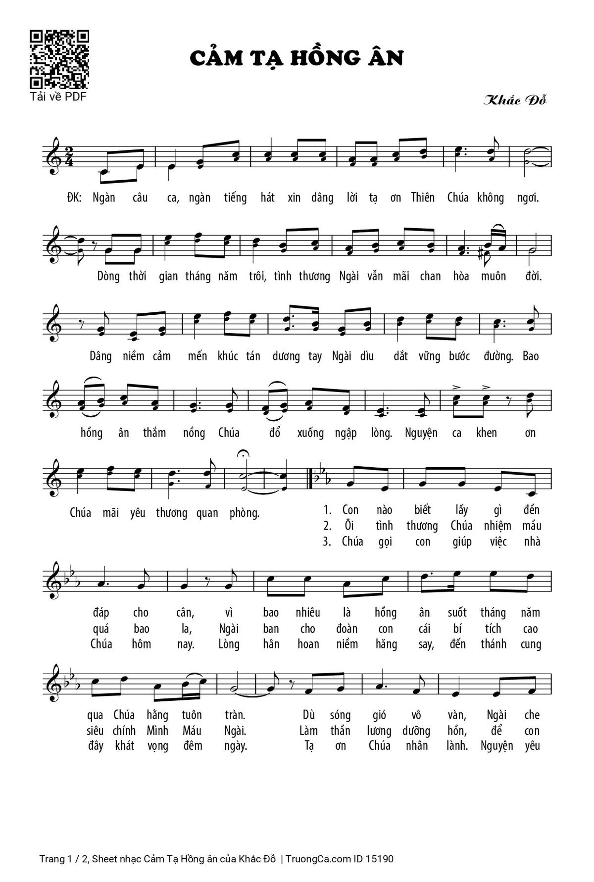 Sheet PDF with the same name Cảm Tạ Hồng ân: