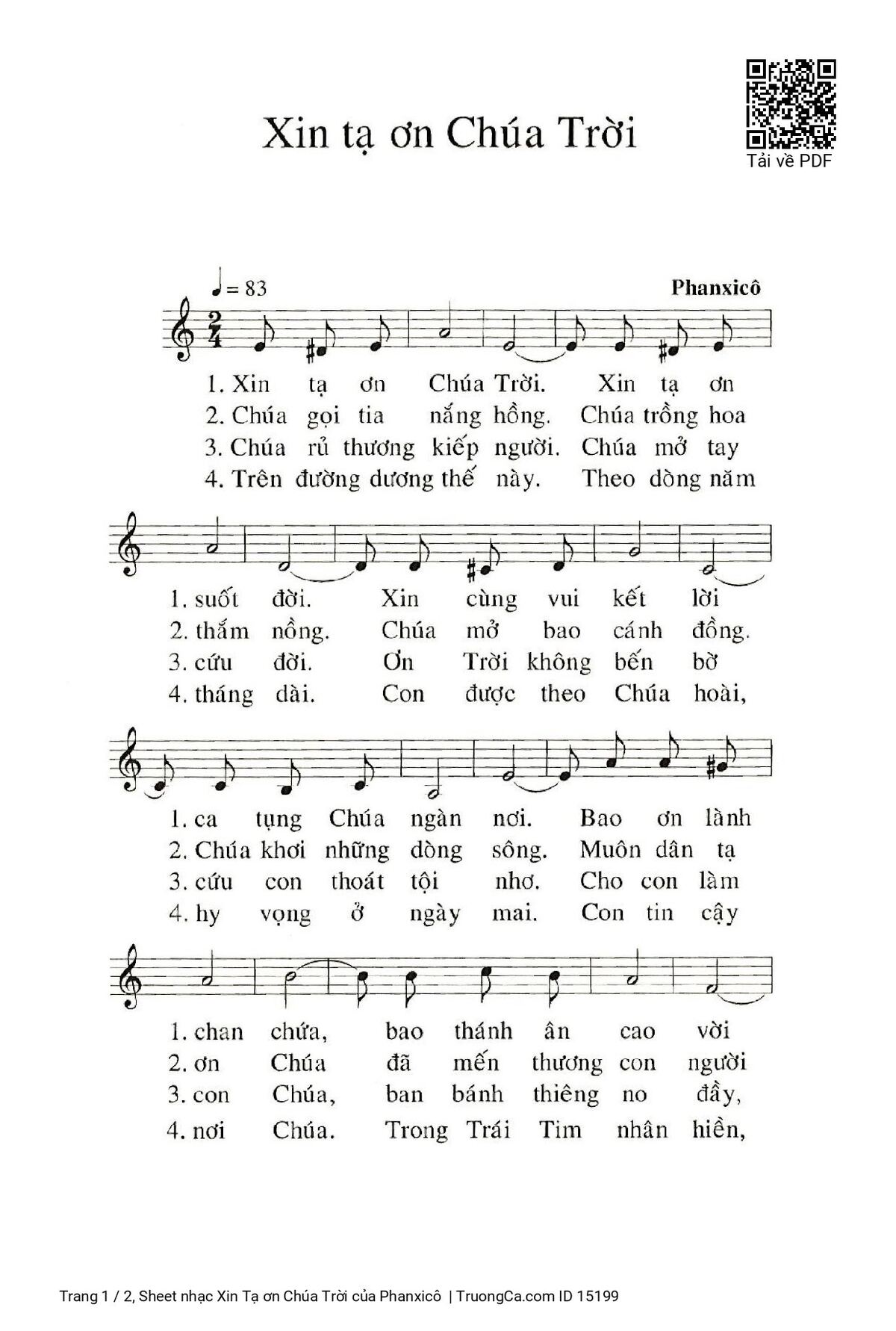 More similar sheets PDF Xin Tạ ơn Chúa Trời: