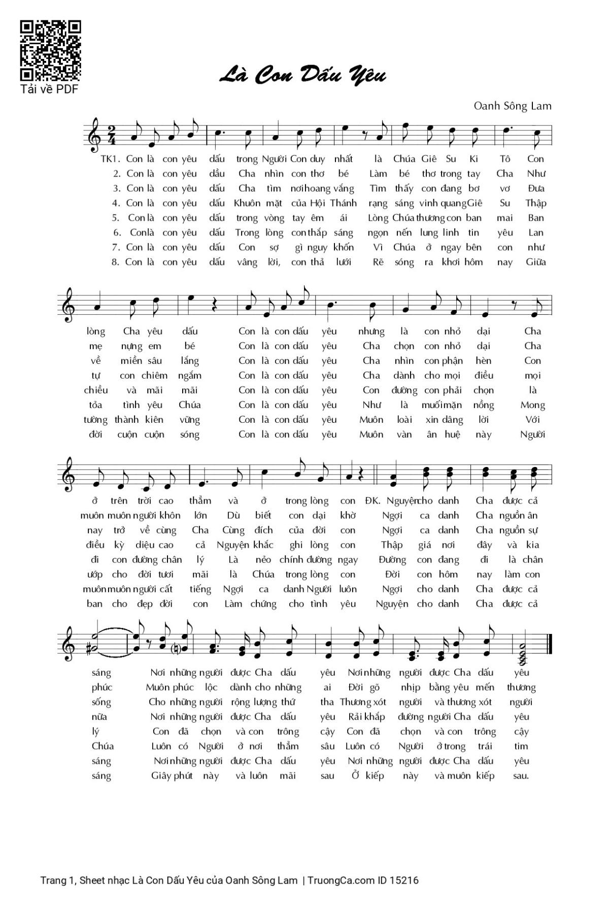 2. Con là con yêu dấu Cha nhìn con thơ bé, làm bé thơ trong tay Cha. Như mẹ nựng em bé. Con là con dấu yêu. Cha chọn con nhỏ dại, Cha muôn muôn người khôn lớn. Dù biết con dại khờ. Ngợi ca danh Cha nguồn ân phúc. Muôn phúc lộc dành cho những ai đời gõ nhịp bằng yêu mến thương.