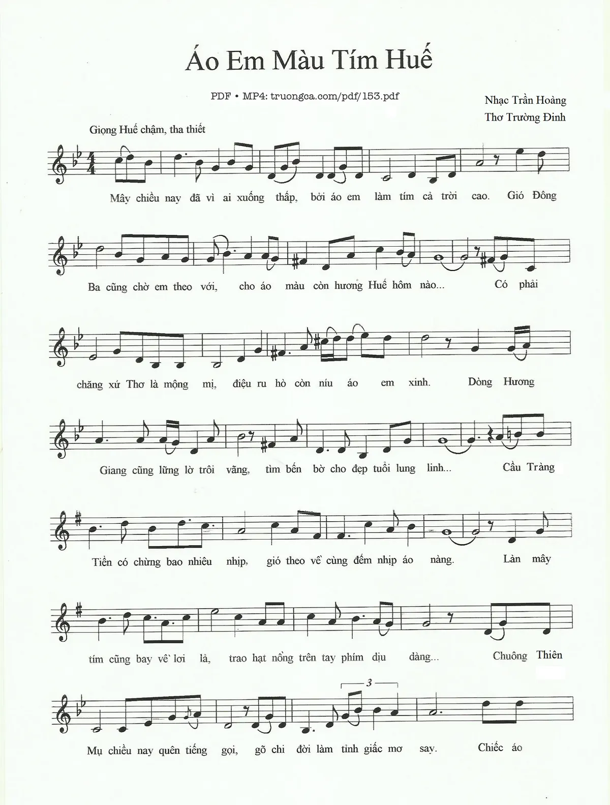 Trần Hoàng Mây chiều nay đã vì ai xuống thấp Bởi áo em làm tím cả trời cao [PDF] [Sheet] [Lyrics] [Mp4/Midi]