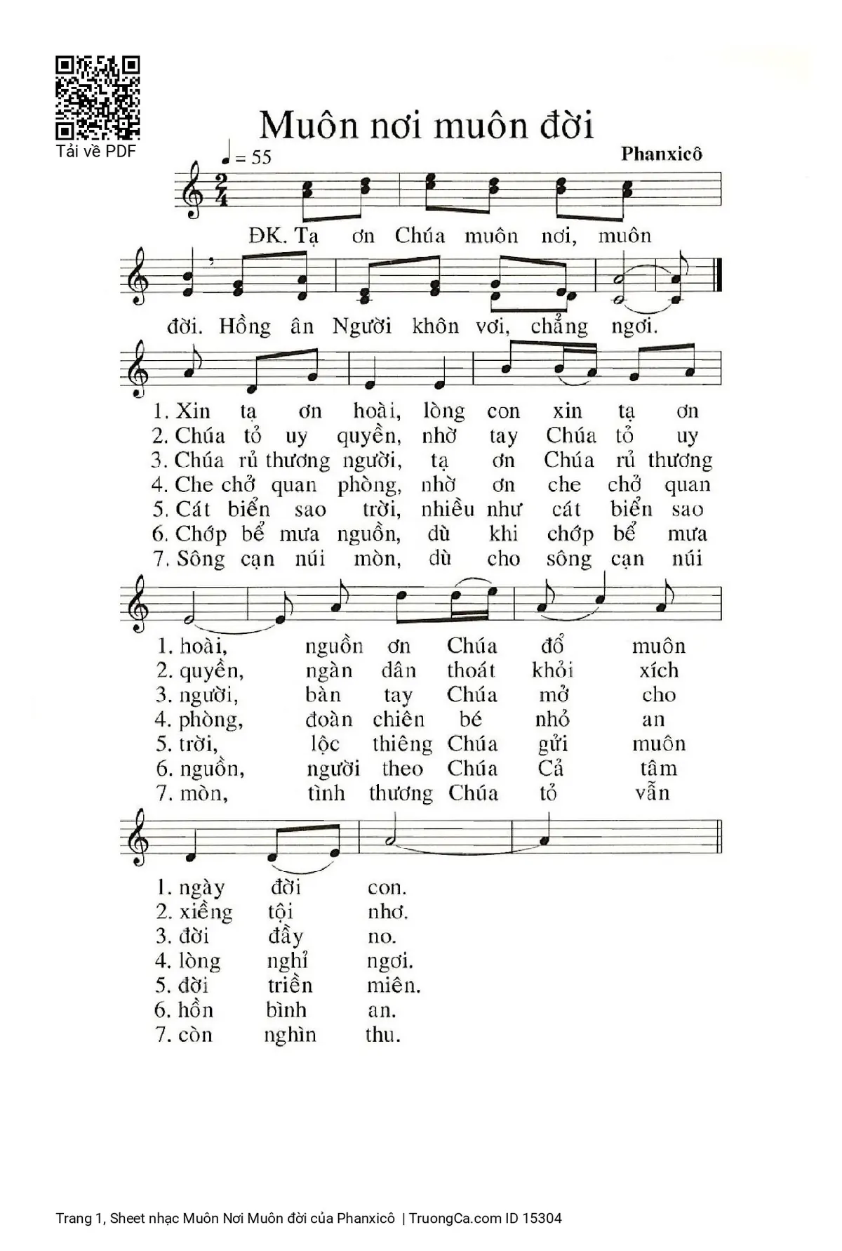 Page 1 of Sheet music PDF Muôn Nơi Muôn đời - Phanxicô