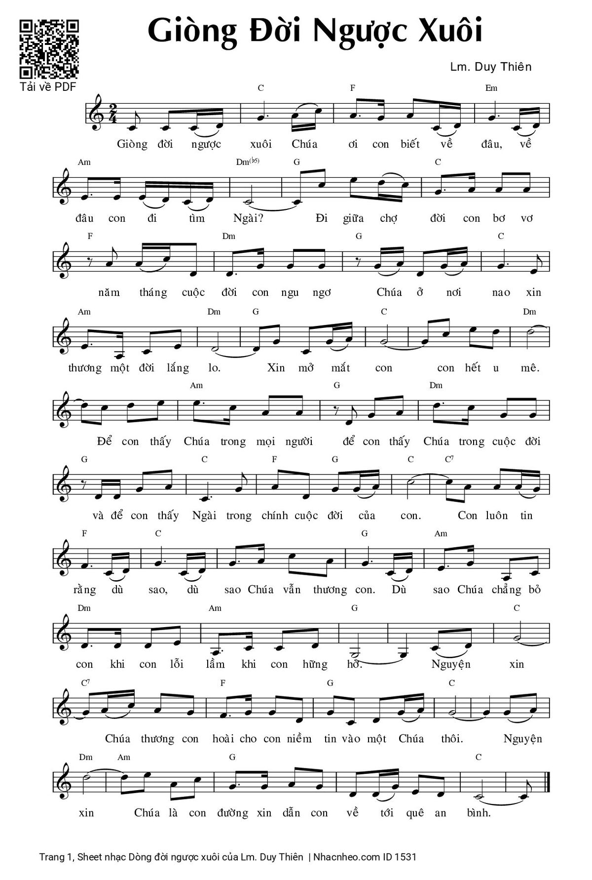 Lm. Duy Thiên Dòng đời ngược xuôi Chúa ơi con biết về đâu [PDF] [Sheet] [Lyrics] [Mp4/Midi]