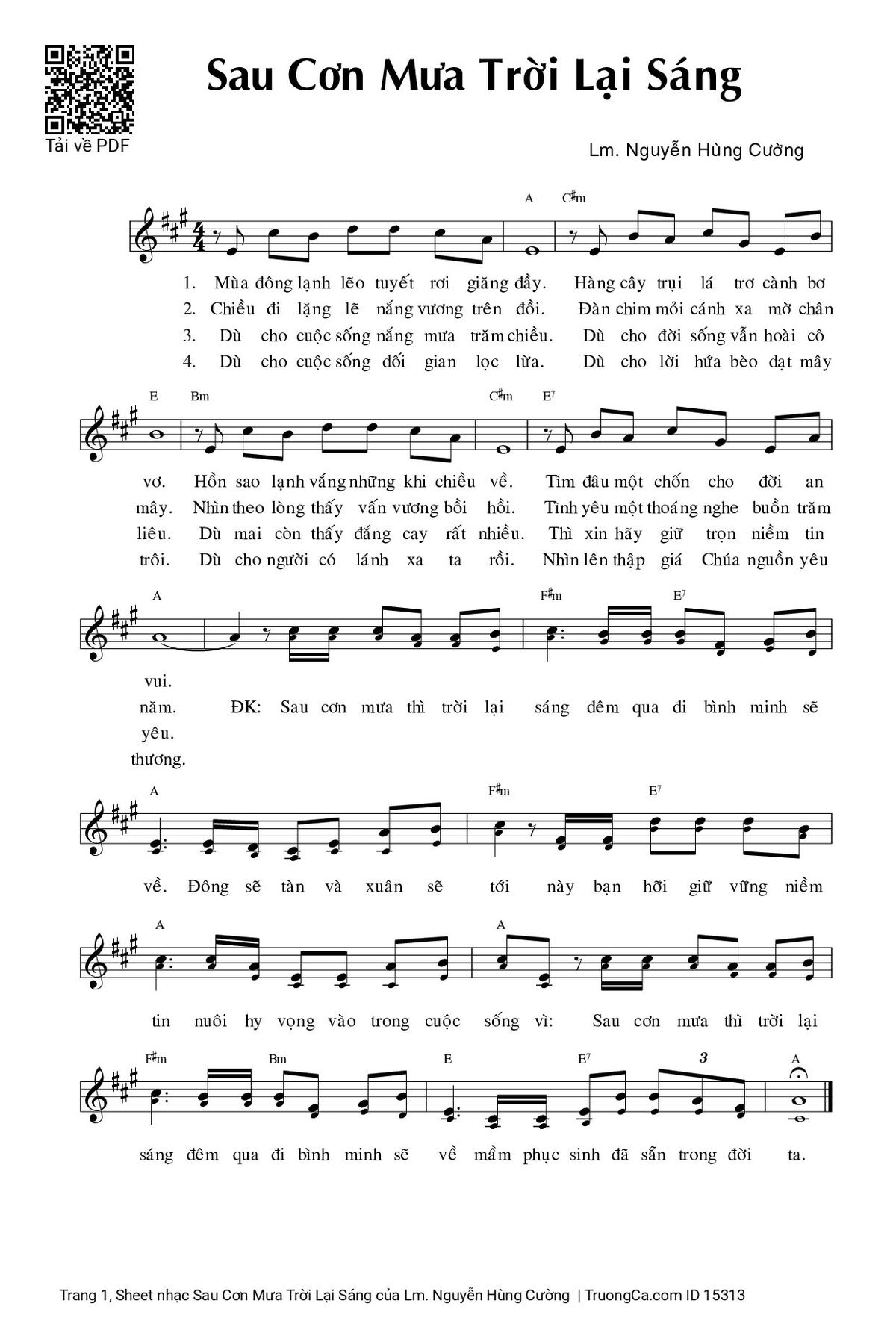Điệp khúc. Sau cơn mưa thì trời lại sáng, đêm qua đi bình minh sẽ về. Đông sẽ tàn và xuân sẽ tới, này bạn hỡi giữ vững niềm tin, nuôi hy vọng vào trong cuộc sống. Vì sau cơn mưa thì trời lại sáng, đêm qua đi bình minh sẽ về, mầm phục sinh đã sẵn trong đời ta.