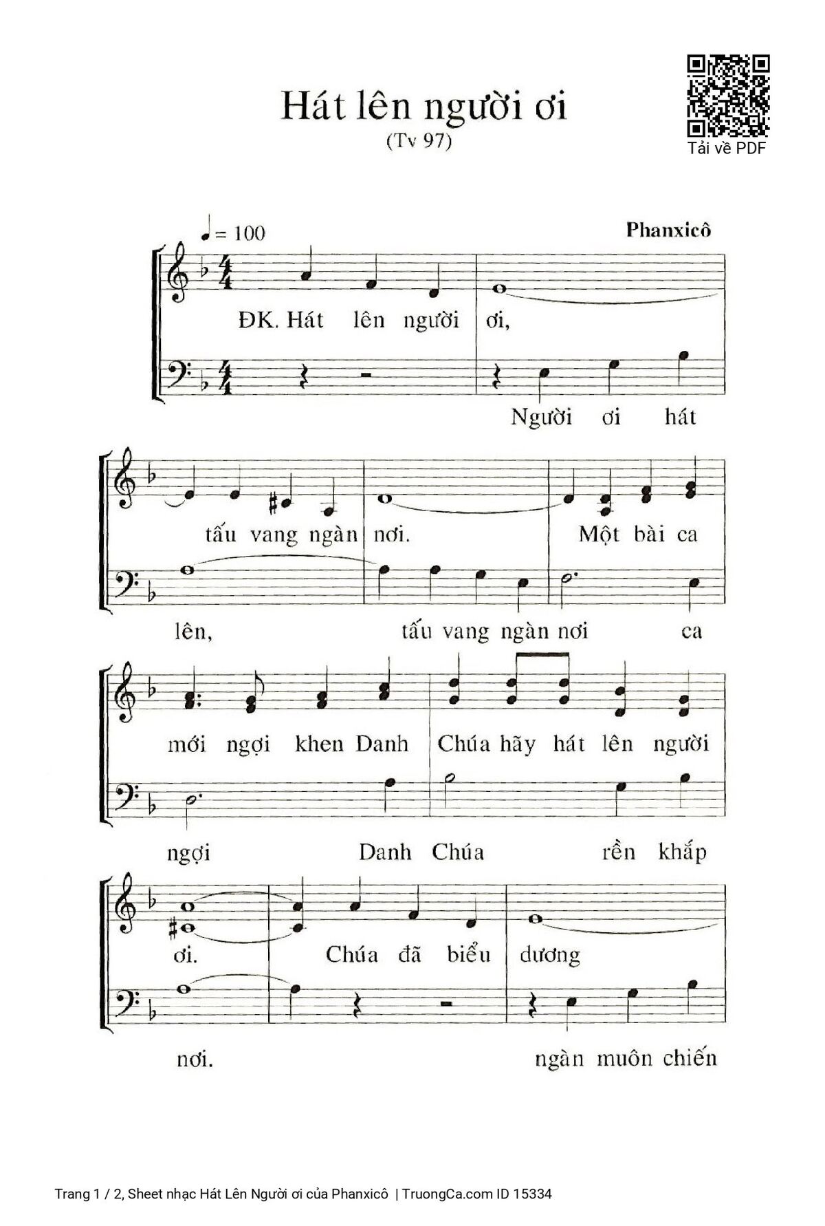 Điệp khúc. Hát lên người ơi, tấu vang ngàn nơi, một bài ca mới ngợi khen Danh Chúa, hãy hát lên người ơi. Chúa đã biểu dương biết bao kỳ công. Bàn tay chí thánh, bàn tay chiến thắng với biết bao kỳ công.