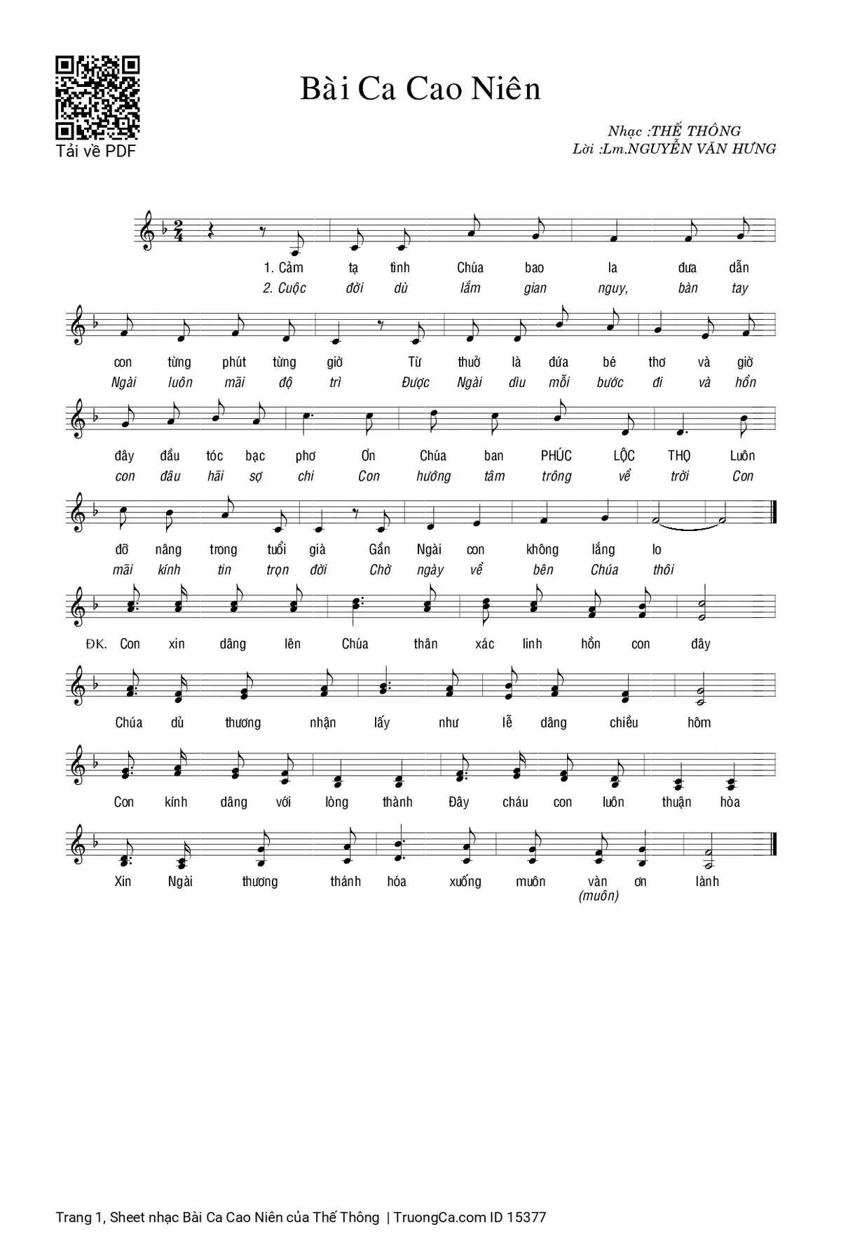 1/ Cảm tạ tình Chúa bao la đưa dẫn con từng phút từng giờ, từ thuở là đứa bé thơ và giờ đây đầu tóc bạc phơ. Ơn Chúa ban Phúc Lộc Thọ, luôn đỡ nâng trong tuổi già gần Ngài con không lắng lo