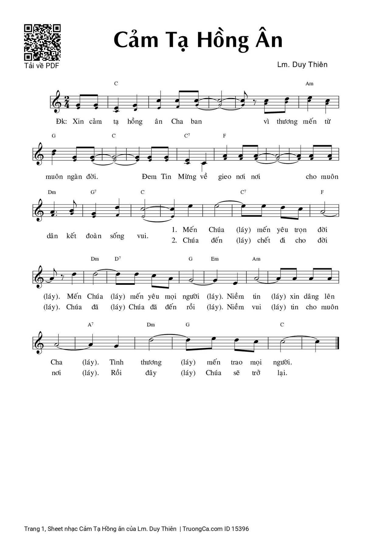 Sheet PDF with the same name Cảm Tạ Hồng ân: