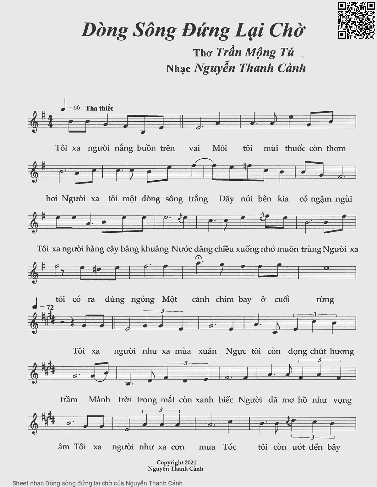 Nguyễn Thanh Cảnh Tôi xa người nắng buồn trên vai Môi tôi mùi thuốc còn thơm hơi [PDF] [Sheet] [Lyrics] [Mp4/Midi]