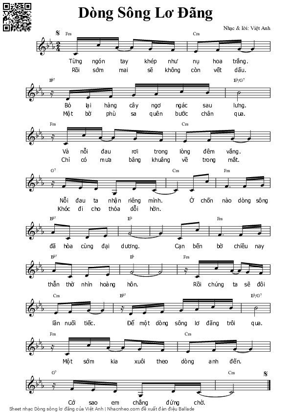 Việt Anh Từng ngón tay khép như nụ hoa trắng Bỏ lại hàng cây ngơ ngác sau lưng [PDF] [Sheet] [Lyrics] [Mp4/Midi]