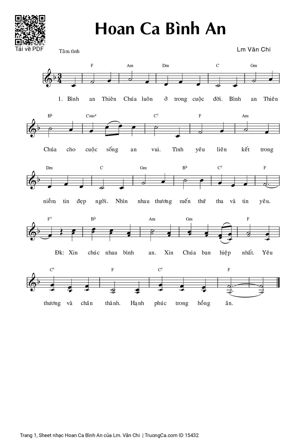 Transposition is the process of moving a song's melody and chords up or down in pitch by a constant interval. The direction of the transposition tool is indicated by a plus (+) sign for up and a minus (-) sign for down. Hover mouse over chords signs to see the chords chart of Hoan Ca Bình An song.