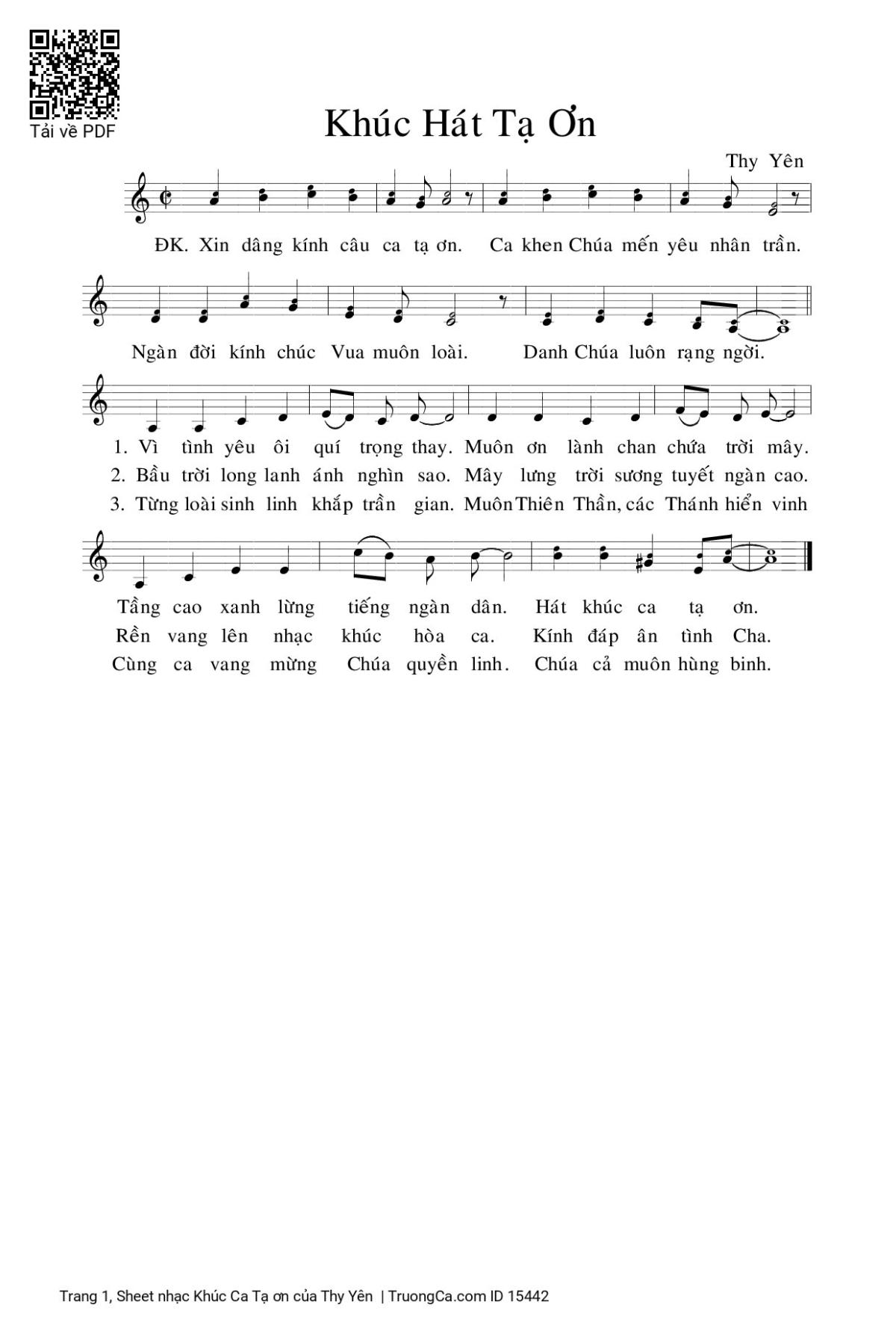 Sheet PDF with the same name Khúc Ca Tạ ơn: