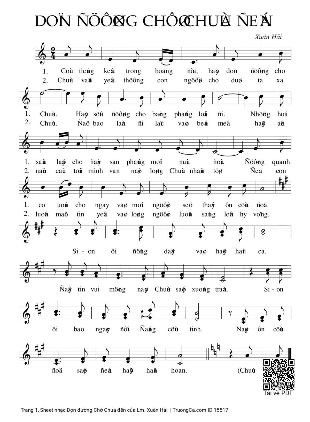 The first sentence: Có tiếng kêu trong hoang địa hãy dọn đường cho Chúa