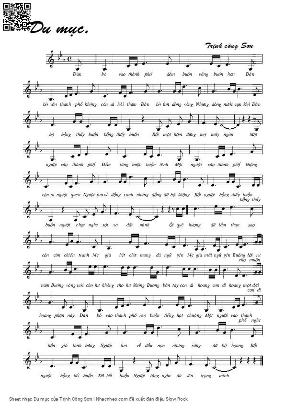 Trịnh Công Sơn Đàn bò vào thành phố đêm buồn vắng buồn hơn [PDF] [Sheet] [Lyrics] [Mp4/Midi]