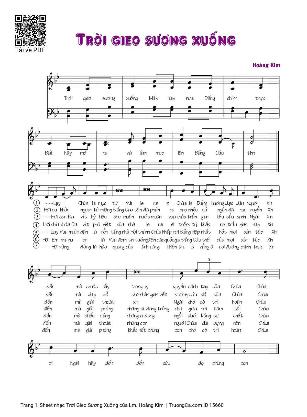 Điệp khúc. Trời gieo sương xuống Mây hãy mưa Đấng chính trực Đất hãy mở ra và làm mọc lên Đấng Cứu tinh