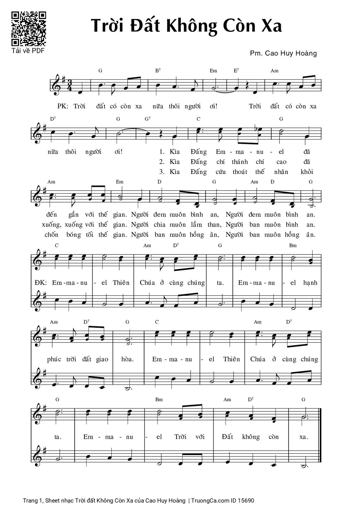 Điệp khúc. Em-ma-nu-el Thiên Chúa ở cùng chúng ta. Em-ma-nu-el hạnh phúc trời đất giao hòa. Em-ma-nu-el Thiên Chúa ở cùng chúng ta. Em-ma-nu-el Trời với Đất không còn xa.