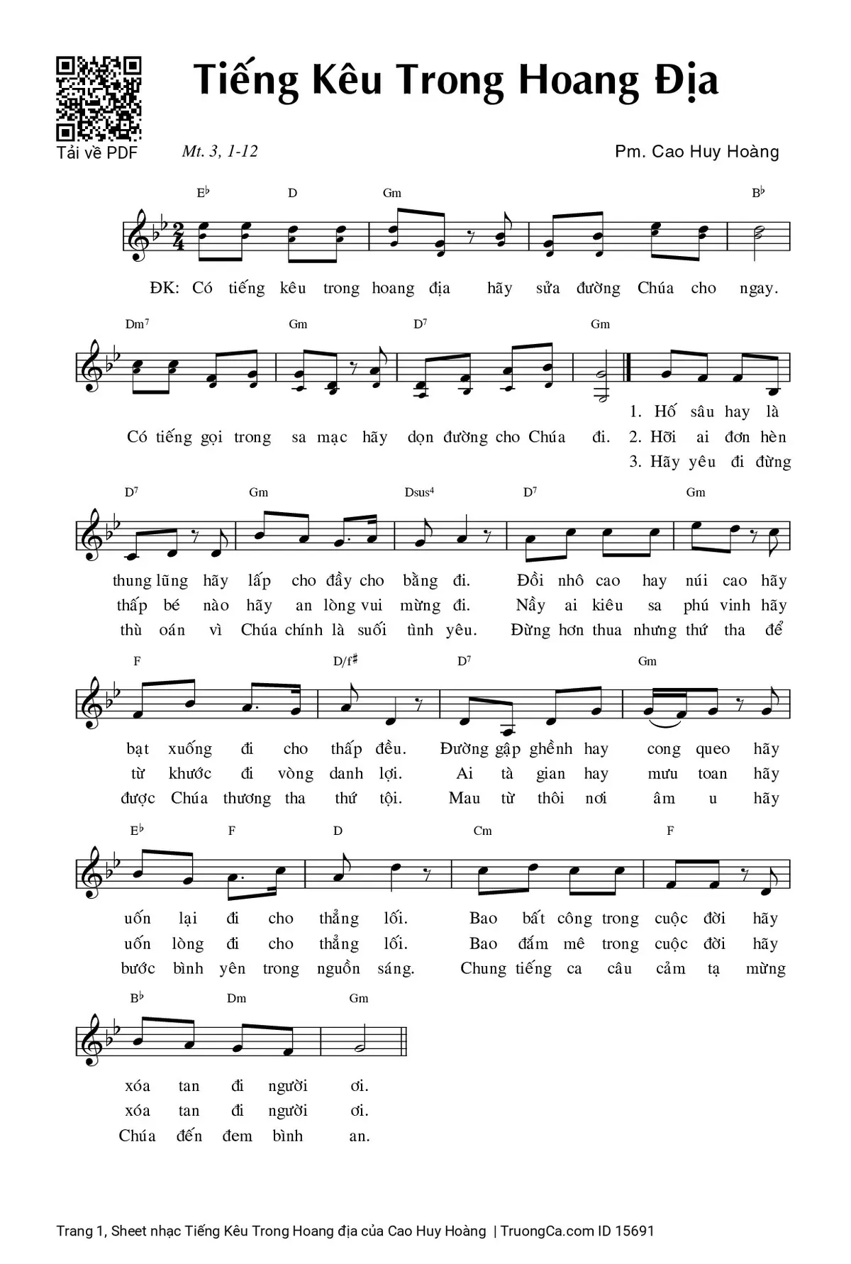 Điệp khúc. Có tiếng kêu trong hoang địa hãy sửa đường Chúa cho ngay. Có tiếng gọi trong sa mạc hãy dọn đường cho Chúa đi.