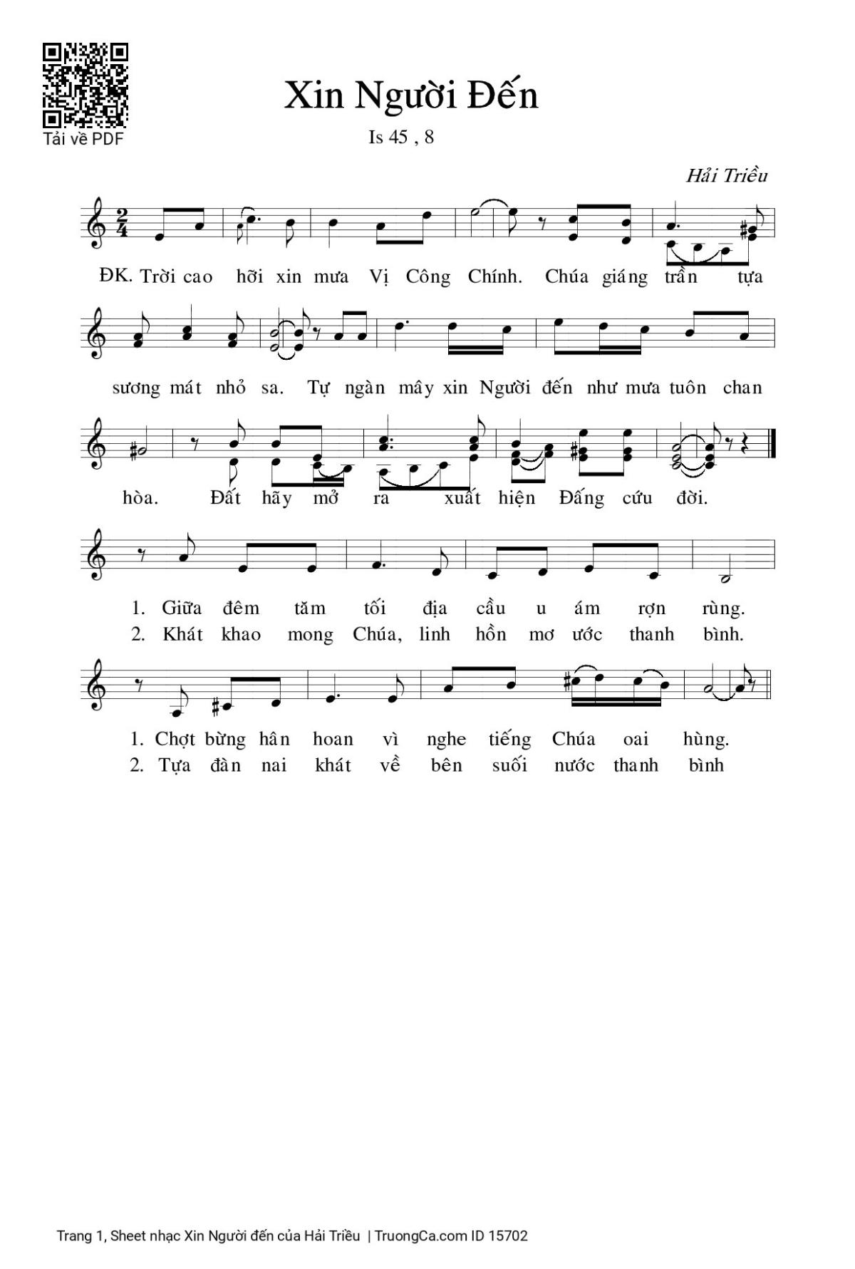 Điệp khúc. Trời cao hỡi xin mưa Vị Công Chính. Chúa giáng trần tựa sương mát nhỏ sa. Tự ngàn mây xin Người đến như mưa tuôn chan hòa. Đất hãy mở ra xuất hiện Đấng cứu đời.