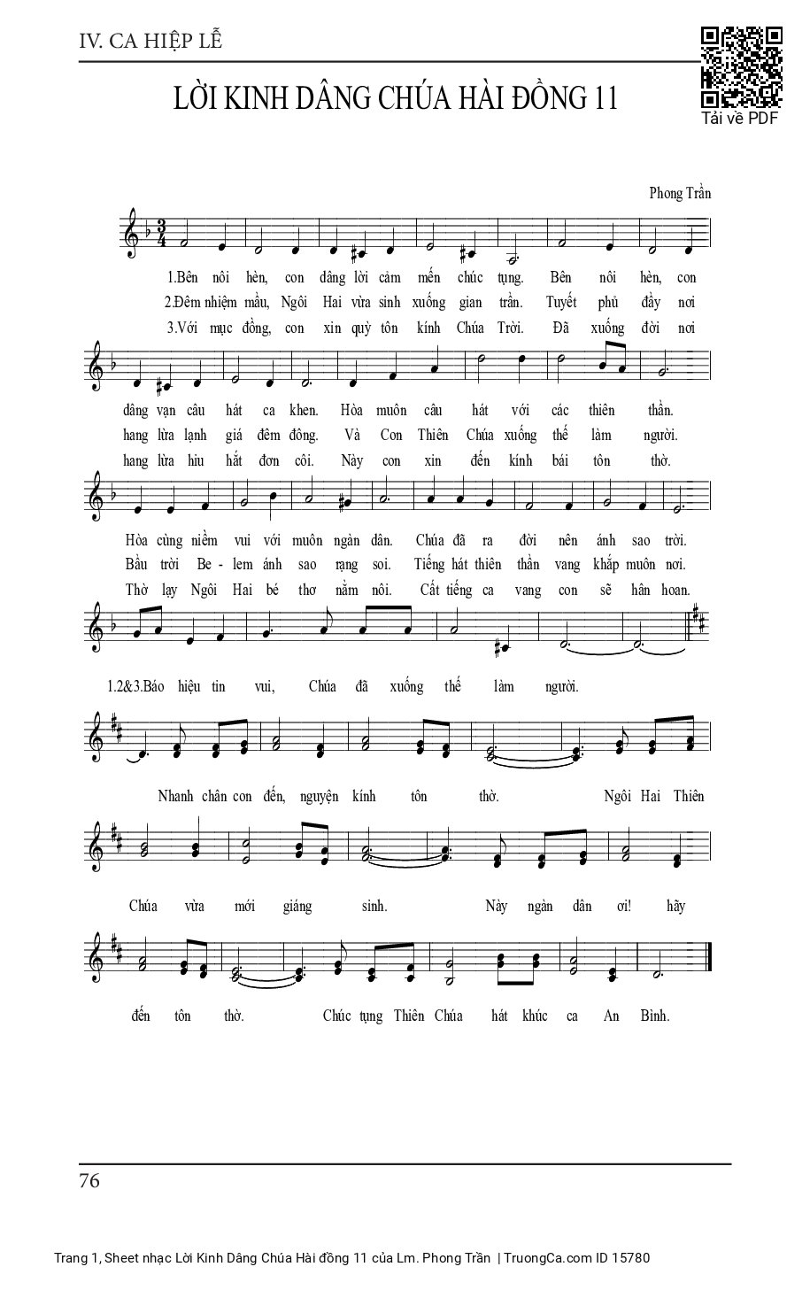 Điệp khúc. Nhanh chân con đến nguyện kính tôn thờ ngôi Hai Thiên Chúa vừa mới giáng sinh. Nay ngàn dân ơi! Hãy đến tôn thờ, chúc tụng Thiên Chúa hát khúc ca an bình.