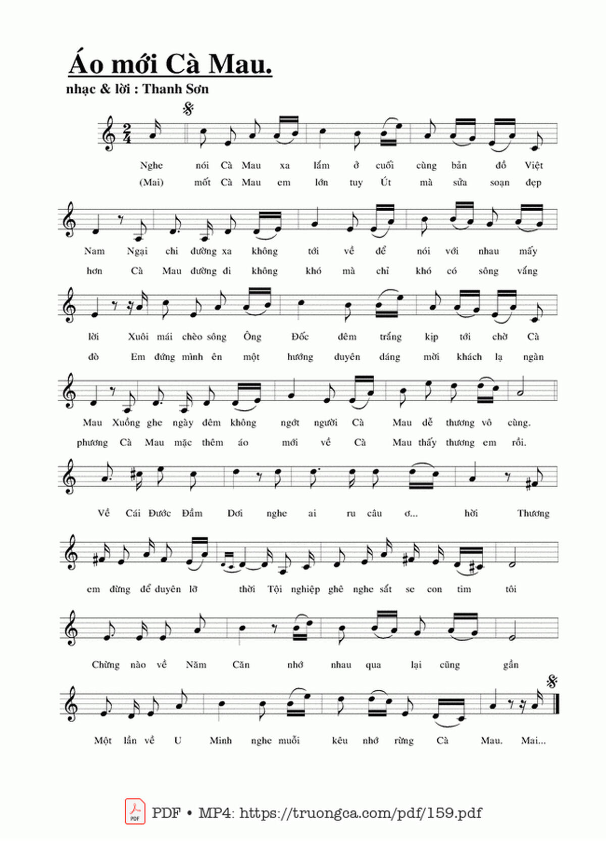 Thanh Sơn Nghe nói Cà Mau xa lắm ở cuối cùng bản đồ Việt Nam [PDF] [Sheet] [Lyrics] [Mp4/Midi]