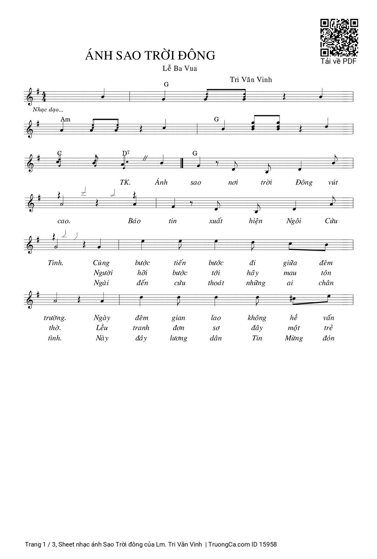 The first sentence: Ánh sao nơi trời đông vút cao Báo tin xuất hiện ngôi cứu tinh