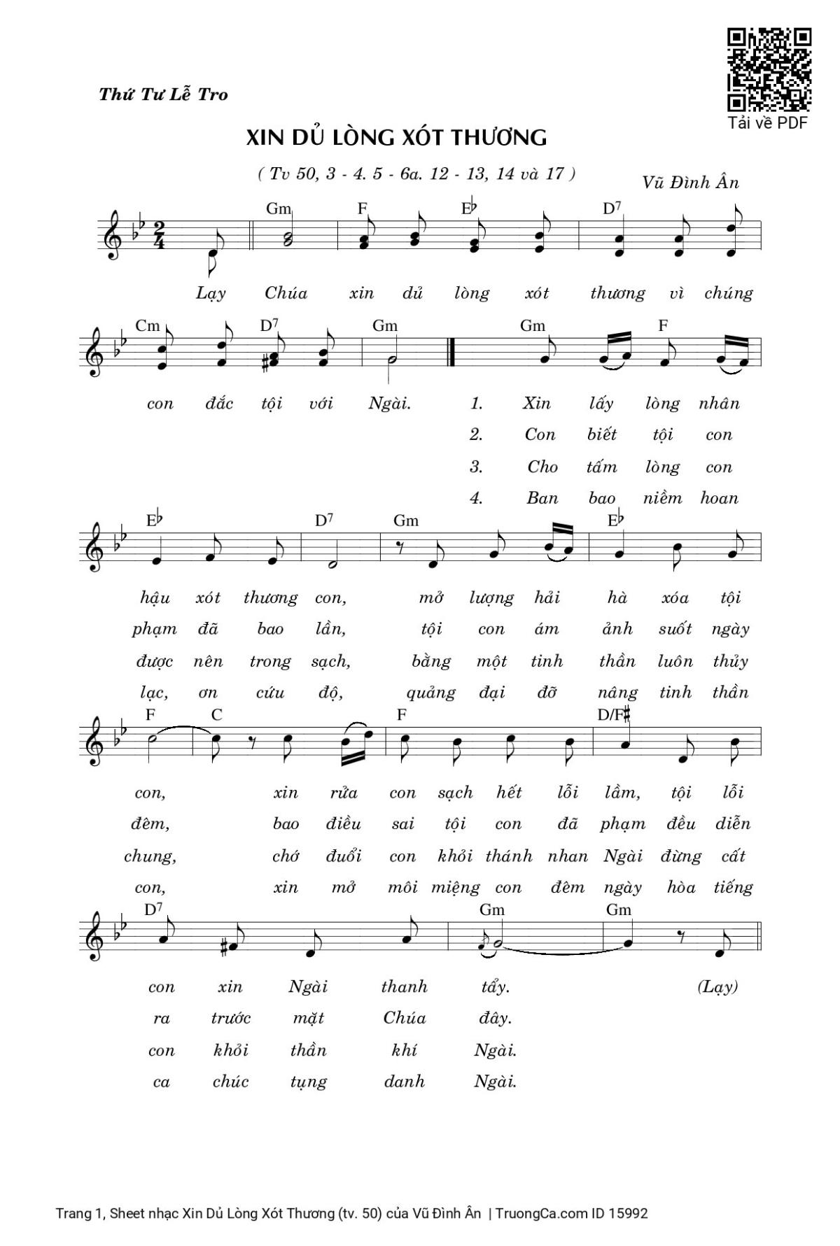 More similar sheets PDF Xin Dủ Lòng Xót Thương (tv. 50):