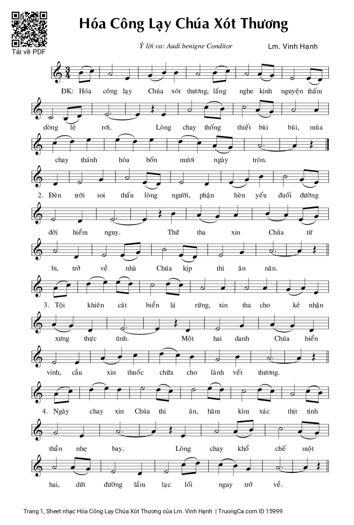 1. Hóa công, lạy Chúa xót thương, lắng nghe kinh nguyện thấm dòng lệ rơi. Lòng chay thống thiết bùi ngùi, mùa chay thánh hóa bốn mươi ngày tròn.